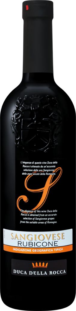 Duca della Rocca, Sangiovese — южное итальянское солнце в бокале. Это сочное, слегка терпкое красное вино создается из винограда сорта Санджовезе, выращенного на виноградниках компании в регионе Рубиконе. Название региона происходит от знаменитой реки Рубикон, которую пересек Юлий Цезарь в начале Великой римской гражданской войны. Сюда входят провинции Форли-Чезена, Равенна и Римини, а также юго-восточная половина Болоньи. Собранный в момент оптимальной зрелости виноград сортируют и мягко прессуют. Ферментация осуществляется в стальных резервуарах при строго контролируемой температуре. После фильтрации вино бутилируется.