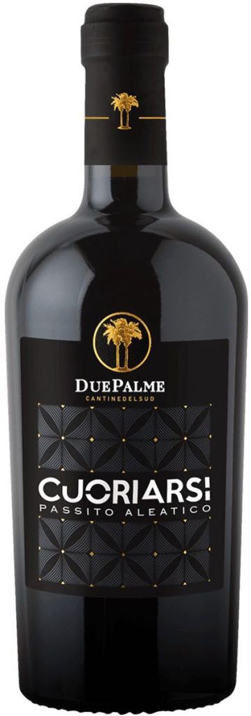 Due Palme, Cuoriarsi, Passito Aleatico, Salento — красное сладкое вино с насыщенным фруктовым ароматом и приятным, сладковатым, сбалансированным вкусом. Вино производят из винограда сорта Алеатико, выращенного в регионе Саленто. Сбор урожая проводится вручную в небольшие ящики в момент полной зрелости ягод, на винодельне плоды подвергаются сушке ("appassimento") в течение месяца. Ферментация проходит в небольших емкостях, прессование проводится вручную. Выдерживается вино в течение 12 месяцев в бочках из американского дуба. Перед поступлением в продажу, вино дополнительно выдерживается в бутылках в погребах винодельни.