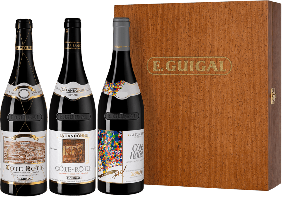 Роскошный набор, состоящий из трех легендарных вин E. Guigal — La Mouline, La Landonne и La Turque.