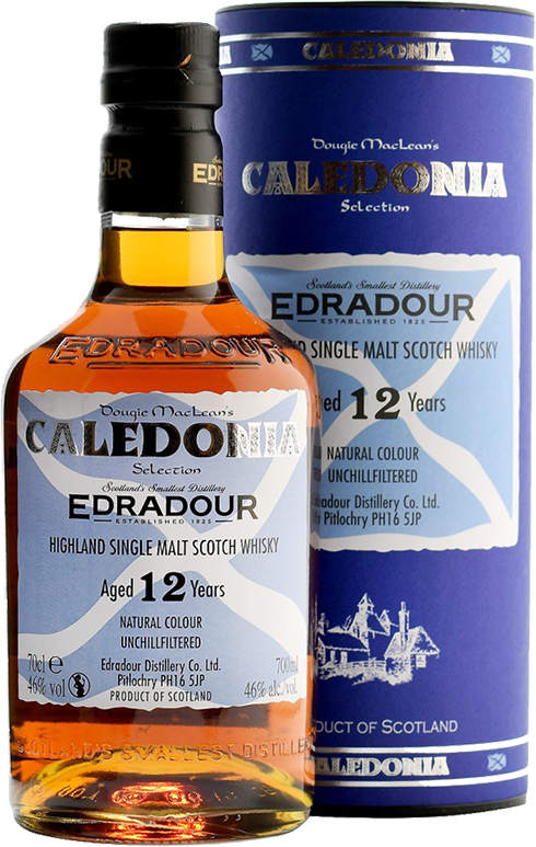 Виски Edradour, "Caledonia" 12 years old назван в честь знаменитой песни Дугласа Маклина "Каледония". Бочки из-под хереса Олоросо были заполнены в 1997 году, в них виски выдерживался до мая 2009 года. Выпущенный ограниченным количеством, "Caledonia" — это очень богатый и сложный 12-летний односолодовый виски, который не подвергается холодной фильтрации и изготавливается без добавления красителей. Вкус виски мощный, обжигающий, со шквалом фруктовых нот во вкусе и аромате.