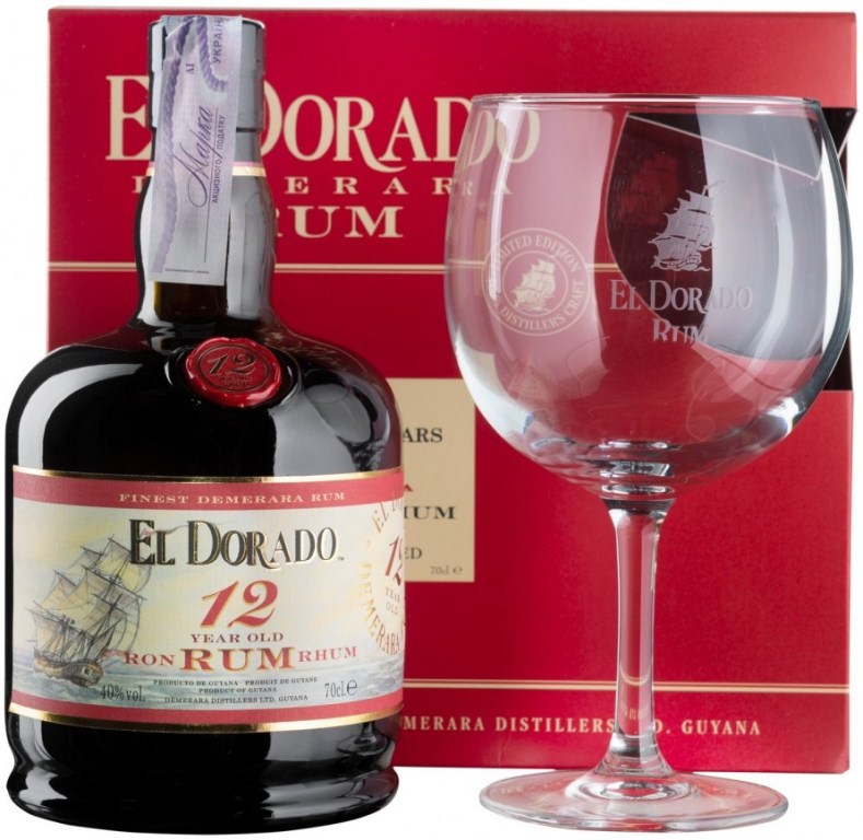 Ром El Dorado, 12 Years Old, with 1 glasses, in gift box, 0.7 л.