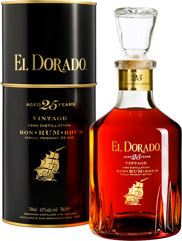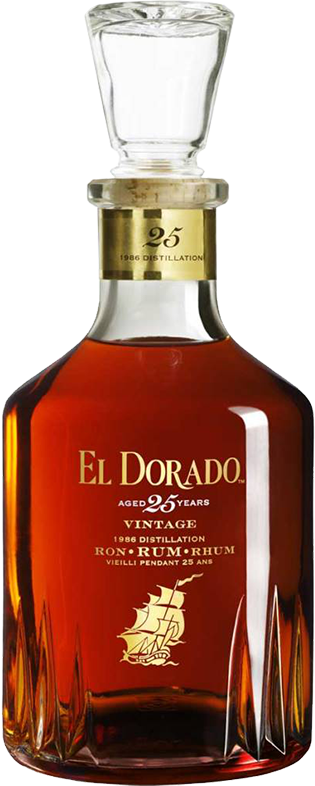 El Dorado, Special Reserve 25 Years Old, созданный в честь нового тысячелетия — исключительный, редкий ром, предназначенный для знатоков и ценителей лучших спиртов в мире. Ром выпущен очень ограниченным тиражом в эксклюзивном графине. Его изысканный вкус отличается удивительной для напитка шелковистой гладкостью. Ром выдержан в дубовых бочках 25 лет, но постоянное внешнее тепло и тропические условия области Демерара резко ускоряют процесс созревания дистиллята, поэтому один год эквивалентен нескольким годам в прохладном климате. Еще одной особенностью является очень сложный процесс производства рома на Demerara Distillers. Здесь используют совершенно уникальные неподвижные перегонные кубы, которых в мире осталось считанные единицы. На Demerara Distillers их три, что тоже необычно, потому что, как правило, применяется четное число кубов. Каждый их них придает дистилляту совершенно особенный дух. Первые кубы — деревянные Коффи, которые обычно используются в производстве ирландского виски и некоторых джинов. Вторые — деревянные с медным верхом, источники очень насыщенного и очень ароматного дистиллята. И, наконец, третьи — французские медные Savalle, сохранившиеся с XVIII века. Полученный ром выдерживается в дубовых 45-галлонных баррелях, использованных до этого один раз для выдержки виски или бурбона, после чего смешивается и снова выдерживается до розлива в бутылки.