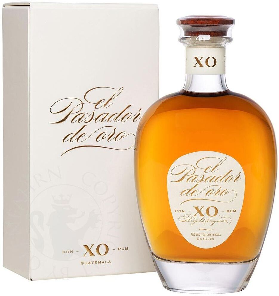El Pasador de Oro, XO — великолепный, сложный, мощный гватемальский ром премиум-класса, который изготавливается во Франции из спиртов, выдержанных в дубовых бочках от 6 до 15 лет и отобранных на гватемальских винокуренных заводах. Окончательный процесс старения рома проходит во Франции, в подвалах компании "Les Bienheureux" в Шаранте. Для этого ром помещают на 6 месяцев в старые коньячные бочки. Ром "Эль Пасадор де Оро" ХО, имеющий лучшее соотношение цены, качества и возраста в своем сегменте, поставляется в элегантном округлом декантере и подарочной коробке.