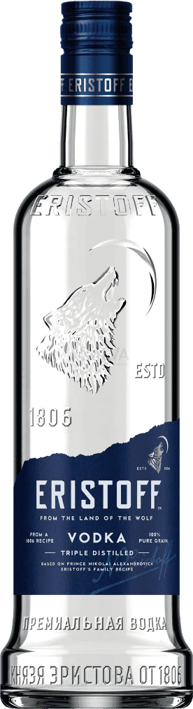Водка премиум-класса "Эристофф" имеет русские корни и отличается французским качеством. Сегодня она производится во Франции по оригинальному рецепту князя Николая Александровича Эристова, разработанному им в Санкт-Петербурге в 1806 году. В 1956 году бренд Eristoff был приобретен компанией Count Martini&Rossi, которая в 1993 году влилась в группу Bacardi. Завод Eristoff расположен на Юго-Западе Франции в Провансе на берегу Роны. Для производства водки "Эристофф" используется сырье высочайшего качества: артезианская вода, источник которой расположен в 35-ти километрах от источника минеральной воды Perrier, отборная пшеница, рожь и пророщенные зерна пшеницы. Использование уникальной зерновой смеси позволяет добиться особой мягкости водки, а пористая вулканическая почва, богатая карбонатом калия, дополнительно обогащает и очищает применяемую воду. Процесс производства включает в себя угольную фильтрацию и трехступенчатую дистилляцию.