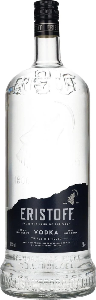 Водка премиум-класса "Эристофф" имеет русские корни и отличается французским качеством. Сегодня она производится во Франции по оригинальному рецепту князя Николая Александровича Эристова, разработанному им в Санкт-Петербурге в 1806 году. В 1956 году бренд Eristoff был приобретен компанией Count Martini&Rossi, которая в 1993 году влилась в группу Bacardi. Завод Eristoff расположен на Юго-Западе Франции в Провансе на берегу Роны. Для производства водки "Эристофф" используется сырье высочайшего качества: артезианская вода, источник которой расположен в 35-ти километрах от источника минеральной воды Perrier, отборная пшеница, рожь и пророщенные зерна пшеницы. Использование уникальной зерновой смеси позволяет добиться особой мягкости водки, а пористая вулканическая почва, богатая карбонатом калия, дополнительно обогащает и очищает применяемую воду. Процесс производства включает в себя угольную фильтрацию и трехступенчатую дистилляцию.