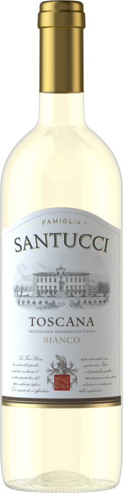 Famiglia Santucci, Bianco Toscana — легкое, питкое, освежающее белое сухое вино, в производстве которого используется виноград сортов Треббьяно Тоскано и Шардоне. Сбор урожая осуществляется по достижении ягодами оптимального уровня спелости. На винодельне плоды подвергаются традиционной для создания белых вин винификации, проходящей в резервуарах из нержавеющей стали при контролируемой температуре. Вино превосходно сочетается с блюдами из рыбы и легкими закусками, также оно является отличным аперитивом.