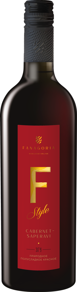 Ф-Стиль, Каберне-Саперави — полусладкая новинка в ассортименте коллекции "F-Style", ранее представлявшей только сухие и полусухие вина. Для создания вина отбираются лучшие ягоды Каберне Совиньон и Саперави, которые гармонично звучат в тандеме. Урожай собирается по достижении ягодами оптимальной технологической зрелости. Винификация включает ферментацию в винификаторах с принудительной остановкой брожения до его завершения. Таким образом сохраняется натуральная фруктовая сладость. Содержание остаточного сахара составляет 30 г/л.