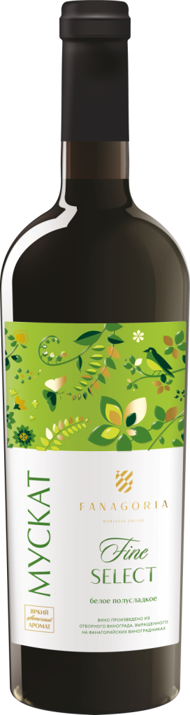 Fine Select, Muscat — нежное и ароматное полусладкое белое столовое вино из винограда сортов Мускат Оттонель и Цитронный Магарача. После сбора урожая, который осуществляется в момент оптимальной спелости ягод, виноград подвергается традиционной винификации при контролируемой температуре. Сладкие и полусладкие вина традиционно популярны в России, поэтому виноделы компании поставили себе задачу создать самые лучшие купажированные и моносортовые вина этой категории. Яркие, ароматные, гастрономичные, дружелюбные, они понятны широкому кругу потребителей. "Файн Селект" Мускат станет отличной парой к десертам, суфле, выпечке с фруктовыми начинками и медом, фруктам и сухофруктам.