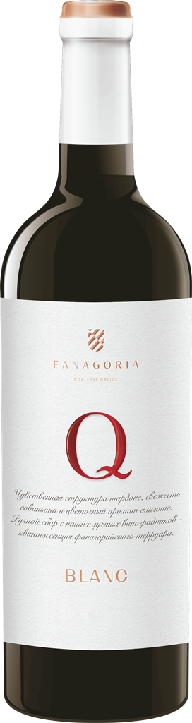 Q Blanc — белое сухое вино из винограда сортов Совиньон Блан, Шардоне и Алиготе, который выращивается на лучших фанагорийских виноградниках в географической зоне "Сенной" Таманского полуострова. После сбора урожая, который осуществляется в момент оптимальной спелости ягод, виноград подвергается ферментации при контролируемой температуре 14-16 ºС. По завершении яблочно-молочного брожения вино частично выдерживается в бочках из французского дуба в течение 12 месяцев. "Кью Блан" имеет хороший потенциал хранения, отлично сочетается с рыбой, пастой с морепродуктами, зелеными салатами с козьим сыром.
