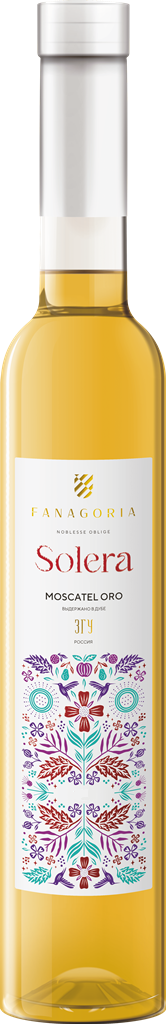 Fanagoria, "Solera" Moscatel Oro — ликерное вино из винограда сорта Мускат Оттонель, выращенного в винодельческом регионе Кубань, на территории Таманского полуострова. Сбор урожая проводится вручную. Вино производится с применением технологии спиртования сусла на мезге и дальнейшей выдержкой в течение 18 месяцев в дубовых бочках из 80-летнего кавказского дуба.