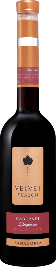 Velvet Season, Cabernet — натуральное сладкое красное вино из винограда сорта Каберне Совиньон, выращенного в винодельческом регионе "Кубань. Таманский полуостров". Виноград выдерживается на лозе до легкого заизюмливания. Сбор винограда производится в момент достижения показателей сахара 320-330 г/л. Из-за высокой плотности сусла и уровня естественного сахара брожение идет очень медленно и требует постоянного контроля виноделов. В результате такой винификации получается очень ароматное, насыщенное, сладкое вино.