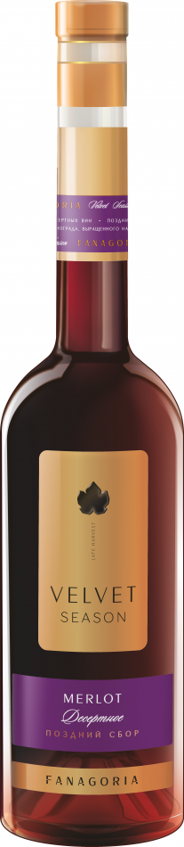 Fanagoria, Velvet Season, Merlot — натуральное сладкое красное вино из винограда сорта Мерло, выращенного в винодельческом регионе "Кубань. Таманский полуостров". Виноград выдерживается на лозе до легкого заизюмливания. Сбор винограда производится в момент достижения показателей сахара 230 г/л. Из-за высокой плотности сусла и уровня естественного сахара брожение идет очень медленно и требует постоянного контроля виноделов. В результате такой винификации получается очень ароматное, насыщенное, сладкое вино.