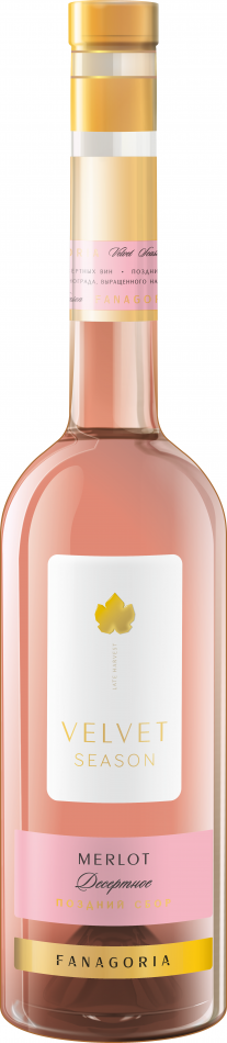 Fanagoria, "Velvet Season" Merlot Rose — десертное сладкое розовое вино из винограда сорта Мерло, выращенного в винодельческом регионе Кубань, на территории Таманского полуострова. Ягоды выдерживаются на лозе до достижения показателей сахара 230 г/л. После сбора сырье помещается в термокамеры, где продолжает подвяливаться. Предферментационная мацерация занимает от 6 до 8 часов. Из-за высокой плотности сусла и уровня естественного сахара брожение идет очень медленно и требует постоянного контроля виноделов.