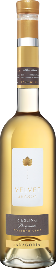 Velvet Season, Riesling — натуральное сладкое вино из винограда сорта Рислинг Рейнский, выращенного в винодельческом регионе "Кубань. Таманский полуостров". Виноград выдерживается на лозе до легкого заизюмливания. После сбора ягоды помещаются в термокамеры, где продолжают подвяливаться до достижения показателей сахара 35-40%. Из-за высокой плотности сусла и уровня естественного сахара брожение идет очень медленно и требует постоянного контроля виноделов.