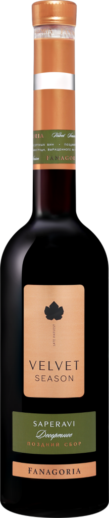 Velvet Season, Saperavi — натуральное сладкое красное вино из винограда сорта Саперави, выращенного в винодельческом регионе "Кубань. Таманский полуостров". Виноград выдерживается на лозе до легкого заизюмливания. После сбора ягоды помещаются в термокамеры, где продолжают подвяливаться до достижения показателей сахара 35-40%. Из-за высокой плотности сусла и уровня естественного сахара брожение идет очень медленно и требует постоянного контроля виноделов. Так как виноград сорта Саперави содержит большое количество антоцианов (красящего вещества), окрашивание бокала и полости рта — закономерный результат дегустации вин из этого сорта.