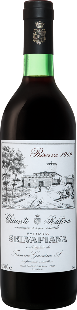 Fattoria Selvapiana, Chianti Rufina Riserva — классическое вино Фаттория Сельвапьяна, выражение тесной связи между Санджовезе и землей Руфина. Франческо Джунтини всегда верил в ценность апелласьона Руфина и с упорным энтузиазмом работал над повышением престижа этого района. Он был одним из первых тосканских производителей, которые производили вино Ризерва только из винограда Санджовезе. Однако, купаж в зависимости от винтажа может быть дополнен небольшой долей других сортов. Холмы, на которых расположены виноградники Руфина, находятся у подножия Апеннин, горных цепей, отделяющих Тоскану от Эмилии-Романьи. Близость к горам сильно влияет на микроклимат региона: более прохладное лето и большие колебания температуры днем и ночью. По этой причине виноград созревает медленно в течение всего летнего сезона и достигает хорошего баланса всех ароматических соединений. Виноград был собран вручную. 1950-е и 1960-е годы были годами Меццадрии. Для винификации винограда использовались бетонные и открытые каштановые бочки. Выдержка проводилась в старых каштановых бочках в старом погребе под виллой, где до сих пор хранятся все вина Ризерва, производимые с 1948 года. Созревание на осадке каждого винтажа могло длиться от 18 месяцев до 5-6 лет.
