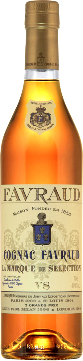 Favraud, VS — изысканный коньяк с тончайшим вкусом и многогранным ароматом, созданный из спиртов высокого качества. Прекрасные свойства коньяка во многом зависят от происхождения спиртов. Виноград выращивается в уникальных аппелласьонах Пти Шампань, Фэн Буа и одном из самых известных — Гран Шампань, обладающим уникальным составом почвы, что придает напитку особенный шик. Выдержка в темном и сыром подвале в дубовых бочках в течение 4-х лет дарует коньяку "Фавро" ВС тонкий вкус, великолепный ароматный букет, красивый цвет и уравновешенную структуру.