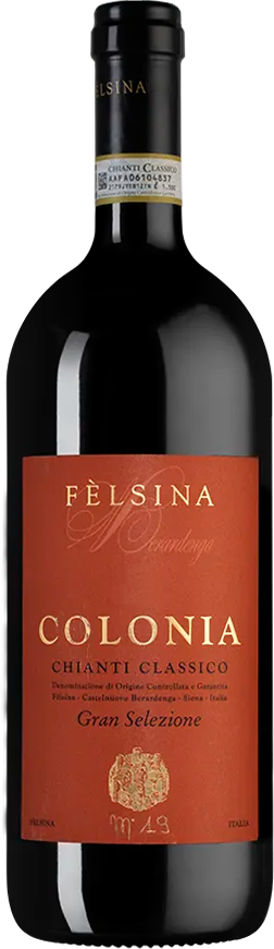 Felsina, Colonia, Chianti Classico Gran Selezione — роскошное красное сухое вино, созданное из отборного винограда сорта Санджовезе, который произрастает на винограднике "Колониа" на вершине Poggio a Rancia. Сбор урожая проводится вручную, на винодельне ягоды подвергаются дестеблированию и бережному измельчению. Ферментация проходит при контролируемой температуре 28-30°С. Мацерация в стальных резервуарах длится 16-20 дней и проводится с регулярным ремонтажем. В апреле-мае следующего года вино отправляется в новые бочки из французского дуба для выдержки в течение 30 месяцев. Перед поступлением в продаже, вино "Колониа" дополнительно выдерживается 8-12 месяцев в бутылках в подвалах винодельни. Ежегодно производится 3000 бутылок.