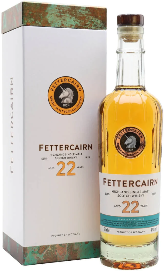 Fettercairn, 22 Years Old — один из четырех односолодовых виски, новинка "Феттеркерн". В производстве использовались спирты, выдержанные в течение 22 лет в бочках из американского дуба из-под бурбона. Виски великолепен в чистом виде в качестве дижестива, со льдом или как дополнение к сигаре.