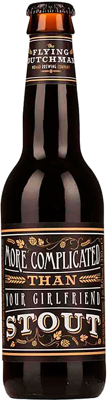 Flying Dutchman, More Complicated Than Your Girlfriend Stout — особенный, сложный стаут. Он был выдержан на бобах какао и зернах кофе с добавлением стручков бурбонской и таитянской ванили. Для созревания использовались бочки со стружкой американского дуба, придавшей пиву четко выраженный древесный оттенок. Объемный вкус этому пиву придает высокое содержание хорошо прожаренных солодов, а хмельная горечь достигает отметки 85 EBU.