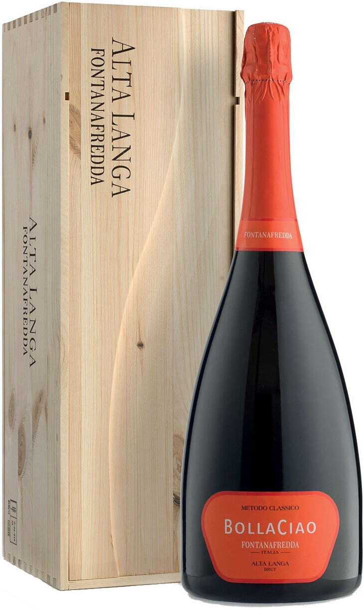 Fontanafredda, "Bolla Ciao" — белое игристое вино, гармонично объединяющее прекрасную структуру Пино Неро с ароматностью и свежестью Шардоне. Лозы выращиваются на высоте 400-600 метров над уровнем моря на почве из белой глины, что гарантирует получение винограда с очень свежим фруктовым вкусом. Ферментация в стальных резервуарах при низкой температуре сохраняет природную свежесть плодов, а созревание не менее 30 месяцев на осадке только увеличивает ароматическую сложность вина.