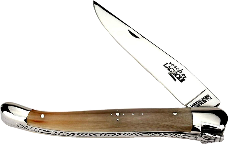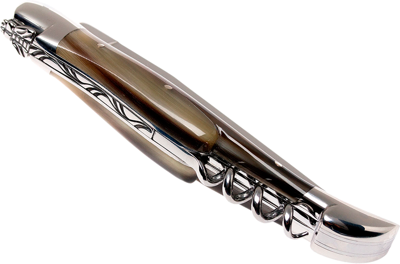 Каждый складной нож с штопором Forge de Laguiole Sommelier Horn Tip собирается вручную только одним мастером. Убедиться в этом позволяет специальное авторское клеймо на металле. Конструкция аксессуара изготовлена из нержавеющей стали, которая на лезвие дополнительно полируется. Она очень прочная, что позволяет ножу служить десятилетиями. Рукоять выполнена из натурального рога. Он тщательно отшлифован до идеальной гладкости. Рукоять не только приятно держать в руке, она еще и обладает эргономической формой.