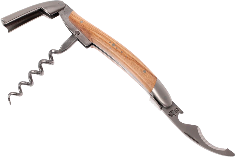 Штопор Forge de Laguiole Sommelier Olivier оснащен острой нарезной спиралью на пять витков. Она быстро проникает в мягкие пробки из искусственных и натуральных материалов, не разрушает их при извлечении. Это позволяет наслаждаться чистым напитком без необходимости его обязательно фильтрации. Особого внимания заслуживает рукоять этой модели. Для ее изготовления была использована оливковая древесина. У нее светлый цвет и красивый рисунок, который становится еще более выраженным после обработки. Рукоять имеет эргономическую форму и приносит только приятные тактильные ощущения.