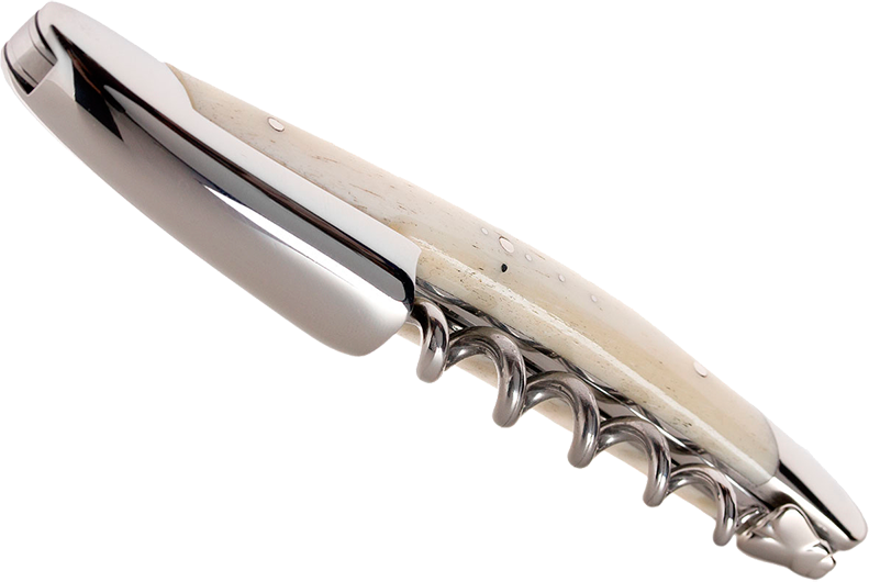 Конструкция штопора Forge de Laguiole Sommelier Os выполнена из нержавеющей стали, которая обладает высокой механической прочностью и малым весом. Рукоять данной модели изготовлена из натуральной кости. Она тщательно отшлифована, поэтому приятная на ощупь, не загрязняется со временем. Штопор Forge de Laguiole Sommelier Os оснащен складным ножом для срезания пленки с горлышка бутылки. Его острая спираль на пять витков легко проникает в пробку, не разрушая ее при этом. Этот аксессуар даже после откупоривания 5000 бутылок не выйдет из строя, в чем уже убедились тысячи людей. Его стоит заказать для ресторанного использования, а также на подарок истинному виноману.