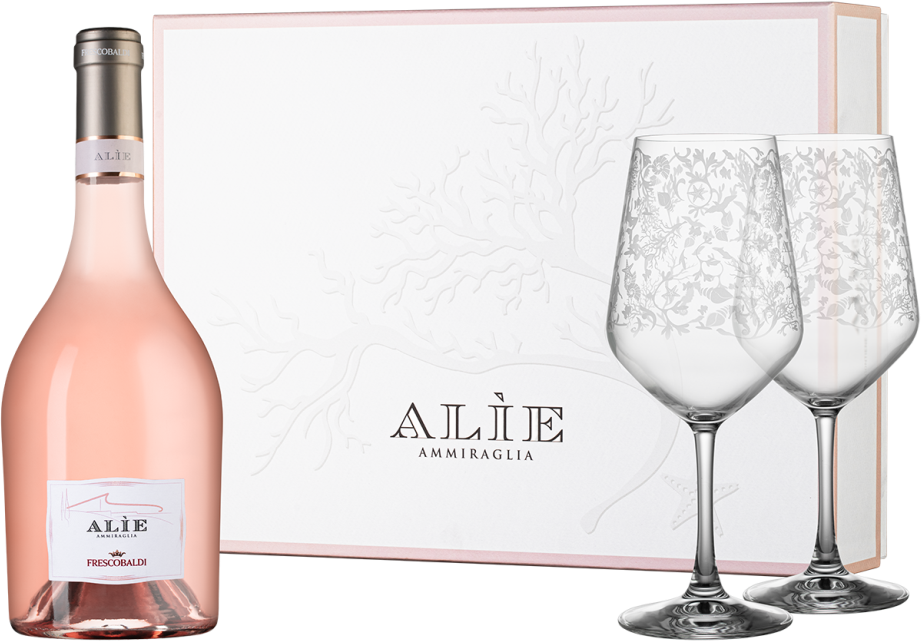 Роскошный набор, состоящий из бутылки розового вина Marchesi de Frescobaldi, "Alie" Rose, Toscana и двух бокалов, станет достойным презентом дорогому и близкому человеку.