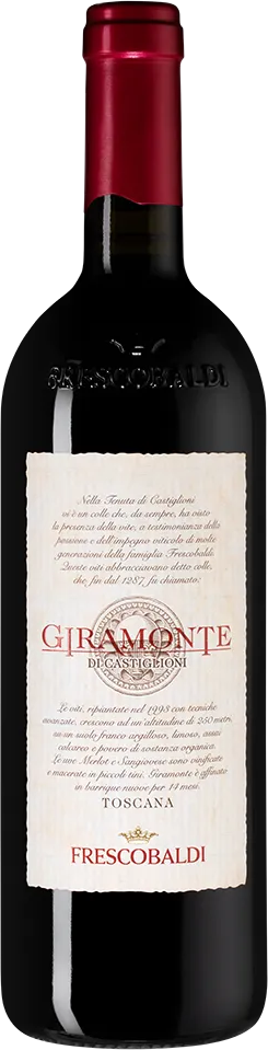 Вино "Giramonte" категории "Супер Премиум" создается в Тенута ди Кастильони, в старинном поместье семьи Фрескобальди, которое располагается в 30 км к северо-западу от Флоренции, в области Кьянти Колли Фьорентини. Великолепные почвы, идеальный микроклимат и строгий отбор винограда дают гарантию высочайшего качества. Здесь создаются богатые и интенсивные вина с шелковистой структурой и бесконечным послевкусием.