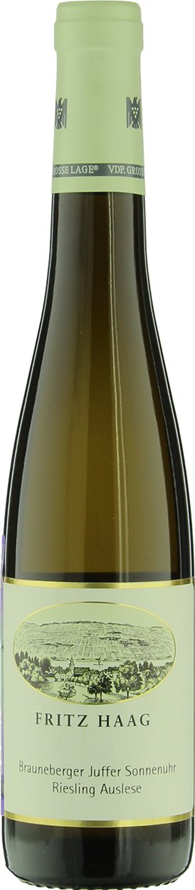 Fritz Haag, "Brauneberger Juffer Sonnenuhr" Riesling Auslese, — грандиозное, благородное сладкое вино с сочным фруктовым ароматом и прекрасно сбалансированным, обволакивающим, длительным вкусом. Вино изготовлено из очень хорошего урожая Рислинга, собранного с топового виноградника под названием "Juffer Sonnenuhr", расположенного на крутых сланцевых склонах и с утра до вечера залитого солнечным светом. Рислинг здесь созревает долго и снимается с лоз поздно, в степени полной зрелости. Вино обладает превосходным потенциалом хранения и будет радовать долгие годы.