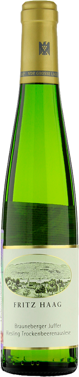 Fritz Haag, "Brauneberger Juffer" Riesling Trockenbeerenauslese — это символ чистой элегантности, силы и разнообразия. Тщательный отбор и поздний ручной сбор заизюмленного винограда являются основой этого вина наряду с терруаром виноградника "Brauneberger Juffer". Этот виноградник, расположенный под уклоном 70%, имеет прекрасную южную экспозицию и отличную шиферную почву, которая оптимально сохраняет тепло, а протекающий поблизости Мозель служит отражателем, усиливающим солнечные лучи. Взаимодействие почвы, близость Мозеля и мягкий микроклимат вносят свою лепту в производство чрезвычайно фруктовых Рислингов.