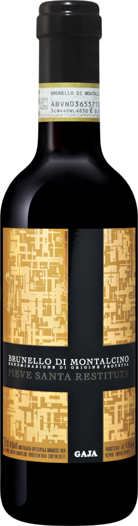 Pieve Santa Restituta, Brunello di Montalcino — энергичное, привлекательное вино с богатым фруктовым вкусом и выразительным ароматом. В 1994 году Анджело Гайя приобрел поместье в Тоскане под названием Pieve Santa Restituta, недалеко от провинции Монтальчино. Поместье ведет свою историю с 7 века н.э. и получило свое название от приходской церкви Santa Restituta («pieve» в переводе с итальянского — церковь). Приход представляет собой уникальный памятник средневековой христианской архитектуры и искусства. В поместье произрастает традиционный для региона виноград сорта Санджовезе — основа для вина Brunello di Montalcino. Возраст лоз составляет около 24 лет. Сбор урожая производится с 4-х виноградников. Ягоды с каждого участка подвергаются мацерации и ферментации по отдельности, в емкостях из нержавеющей стали в течение 3-х недель. После прохождения малолактической ферментации создается бленд для дальнейшей выдержки, который помещают в дубовые бочки на 24 месяца, а затем ещё год выдерживают в бетонных резервуарах. Первый релиз Брунелло ди Монтальчино состоялся в 2005 году.