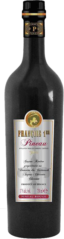Красное крепленое вино "Pineau Francois 1er", Pineau des Charentes Rouge производится из сортов Каберне Совиньон и Каберне Фран, собранных в провинции Шаранта (Коньяк, Пти Шампань). 75% вина составляет виноградный сок и 25% — молодой коньяк годичной выдержки, который добавляется к мусту перед ферментацией. Вино выдерживается в бочках из французского дуба не менее 3 лет.
