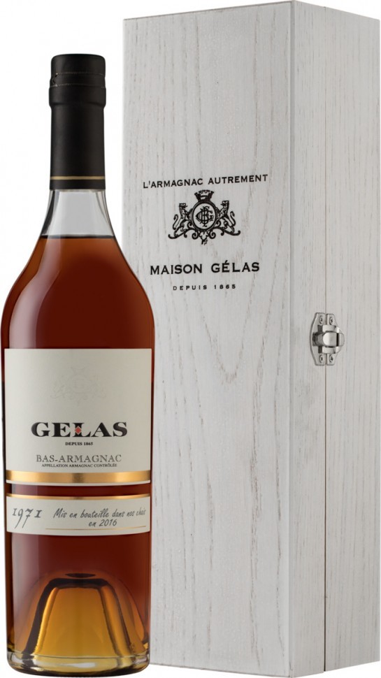 Gelas, Bas Armagnac, 1971 — миллезимный арманьяк, изготовленный преимущественно из винограда сорта Бако и небольшого количества Уни Блан, выращенных в регионе Bas Armagnac (Нижний Арманьяк). Длительная выдержка арманьяка проходила в бочках из черного дуба. Этот напиток предназначен для завершения трапезы, в качестве дополнения к сигаре или кофе, а его подача осуществляется либо в коньячных бокалах, либо в специальных бокалах для арманьяка.