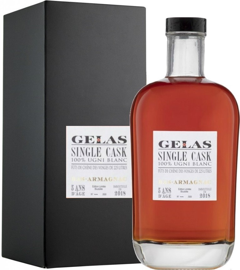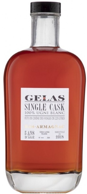 Gelas, "Single Cask" 5 Ans — роскошный арманьяк, выдержанный в течение 5 лет в дубовых бочках, а затем еще полгода в бочках из-под белого вина. Розлив осуществляют при бочковой крепости 52,6% без фильтрации. Выпуск Gelas, "Single Cask" 5 Ans ограничен 300 экземплярами. Его вкус характеризуется округлостью и мягкостью. Он выразитлеьно фруктовый, поэтому его можно подавать в качестве аперитива или дижестива с кубиками льда или смешать с любимым фруктовым соком.
