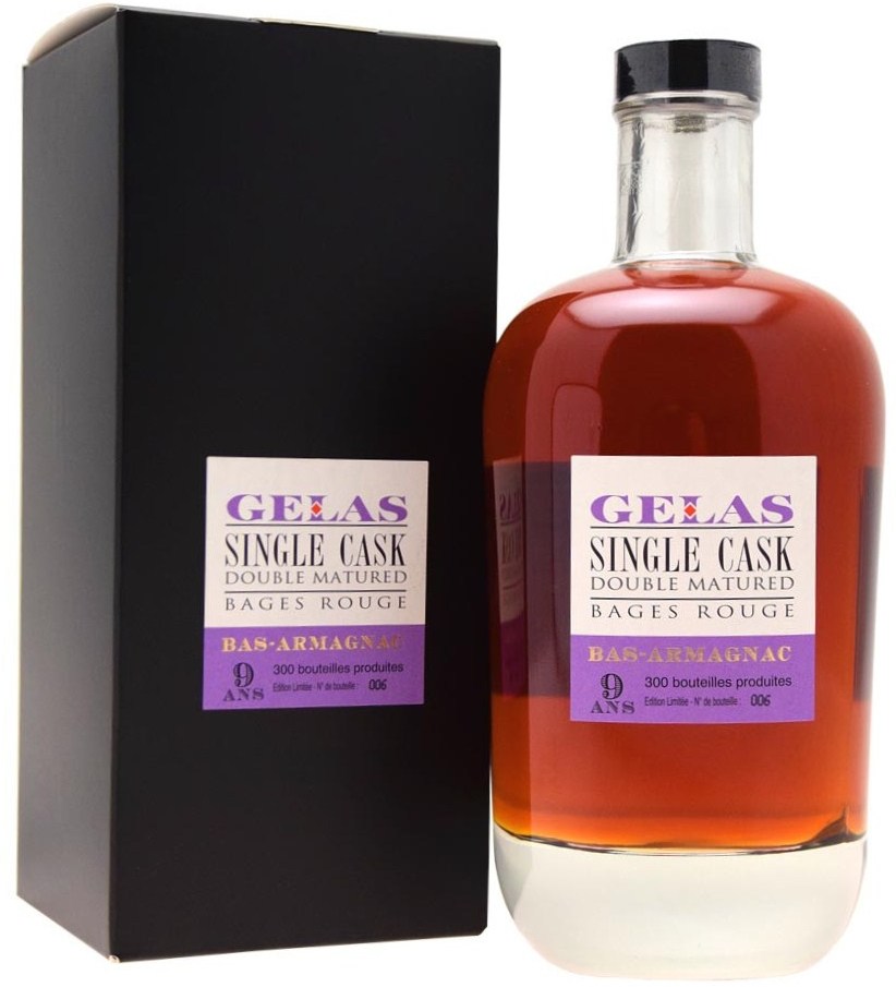 Gelas, "Single Cask" 9 Ans — роскошный, мощный, зрелый, гармоничный арманьяк, изготовленный из винограда сортов Уни Блан и Бако и выдержанный в течение 9 лет сначала в бочках из лимузенского дуба, а на финише — в бочках из-под вина Амароне от винодельни Дзанони. Розлив осуществляют при бочковой крепости в 45,2% без фильтрации. Выпуск арманьяка ограничен 300 экземплярами.