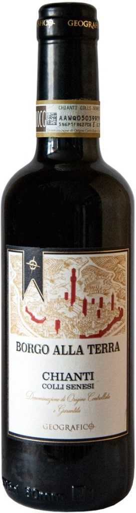 Geografico, Borgo alla Terra, Chianti Colli Senesi — традиционное итальянское Кьянти, виноград для изготовления которого выращивается в подрегионе Колли Сенези, находящемся на окружающих Сиену холмах. Мозаика климатических условий и почв создает условия для созревания уникального урожая на каждом винограднике. Вино из этой местности отличается заметной фруктовостью и характерным сельским шармом. Для изготовления "Борго алла Терра" Кьянти Колли Сенези используют виноград сортов Санджовезе и Канайоло, выращенный на участках с песчано-глинистой почвой с галькой. Вино производится с использованием самых современных технологий виноделия, чтобы выразить все очарование фруктов и деревенский стиль высококачественного Кьянти.