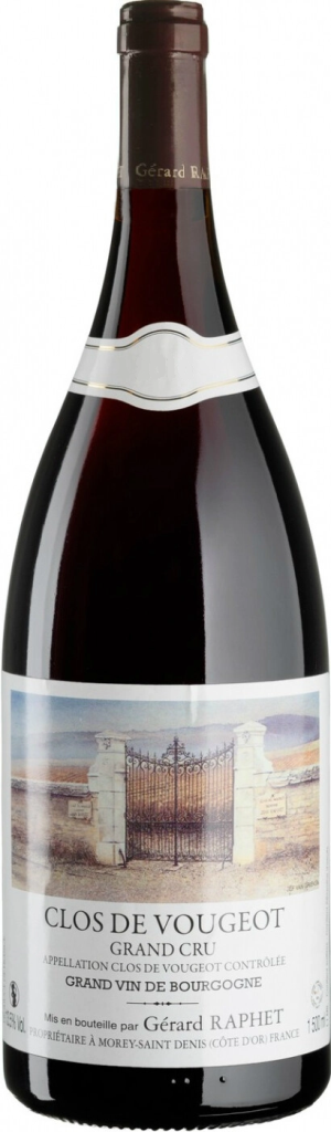 Gerard Raphet, Clos de Vougeot Grand Cru — пожалуй, одно из лучших вин Жерара Рафета, один из ярчайших представителей классического бургундского вина и стиля Рафета, объединяющего интенсивность с чистотой, лазерной точностью и утонченностью. Виноград сорта Пино Нуар для изготовления вина выращивается на винограднике Кло де Вужо класса Гран Крю, который тесно связан с историей винодельческой Бургундии. Основанный около 1150 лет назад монахами-цистерцианцами, Clos de Vougeot окружен каменными стенами, возведенными пять веков назад. Кло де Вужо располагается на высоте 240-270 метров над уровнем моря и имеет глинистые, мергелевые и известковые почвы. На сегодняшний день около 80 владельцев разделяют этот престижный виноградник. Жерару Рафету здесь принадлежит два участка: один большой в северной части виноградника, другой, поменьше, со старыми лозами — в южной. Возраст лоз колеблется от 60 до 80 лет. При создании вина Жерар Рафет грамотно сочетает инновационные технологии и многовековые традиции, которые передаются из поколения в поколение. Урожай собирается вручную по достижении ягодами оптимальной спелости. Ферментация с натуральными дрожжами протекает в стальных танках при контролируемой температуре. Выдержка вина в бочках из французского дуба, 15% из которых — новые, занимает приблизительно 18 месяцев. Перед розливом Кло Вужо Гран Крю не фильтруется и не осветляется. Потенциал хранения вина составляет 15-18 лет.