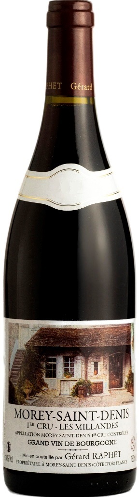 Gerard Raphet, Morey-Saint-Denis 1-er Cru, Les Millandes — щедрое, мощное, ароматное красное сухое вино из винограда сорта Пино Нуар, который выращивается на винограднике "Les Millandes", одном из крупнейших класса Премье Крю в Морэ-Сен-Дени, расположенном к северу от самого города. Виноградник получил свое название из-за небольшого размера ягод, которые производят местные лозы, что является как признаком благоприятного терруара, так и преклонного возраста лоз, некоторым из которых около 70 лет. Виноградные лозы высажены на таких же хорошо дренированных глинисто-известковых почвах, что и виноградники класса Гран Крю на склоне холма выше. Восточная экспозиция "Les Millandes" обеспечивает равномерное созревание урожая в прохладном климате Бургундии. До сбора урожая виноград достигает оптимальной спелости, а более прохладные вечера позволяют сохранить необходимую кислотность. При создании вина Жерар Рафет грамотно сочетает инновационные технологии и многовековые традиции, которые передаются из поколения в поколение. Урожай собирается вручную. Ферментация с природными натуральными дрожжами протекает в стальных танках при контролируемой температуре. Выдержка вина в бочках из французского дуба, 20% из которых — новые, занимает 18 месяцев. Перед розливом Морэ-Сен-Дени Премье Крю "Ле Мийанд" не фильтруется и не осветляется. Потенциал хранения вина составляет 10 лет.