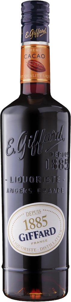 Ликер Giffard, Creme de Cacao Brown приобретает сливочно-шоколадный вкус благодаря особому методу производства. Дистилляты какао-бобов, совмещенные в процессе мацерации с высококачественным спиртом и сахарным сиропом, позволяют получить ликер с нотами горького шоколада, кофе и ванили. Он прекрасно подойдет для приготовления коктейлей "Alexander" и "Foret Noire".