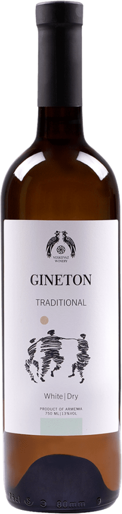 Белое сухое вино "Gineton" изготовлено из двух старинных сортов винограда — Воскеат и Кангун, выращенных в Армавирском и Таушском регионах Армении. Сбор урожая осуществлялся в последних числах сентября и первых числах октября. Выдержка вина проводилась в течение 4 месяцев в чанах из нержавеющей стали, в результате которой появилось освежающее сухое вино с потрясающе красивым соломенным цветом и деликатным ароматом с нотами белых цветов и цитрусовых оттенков.