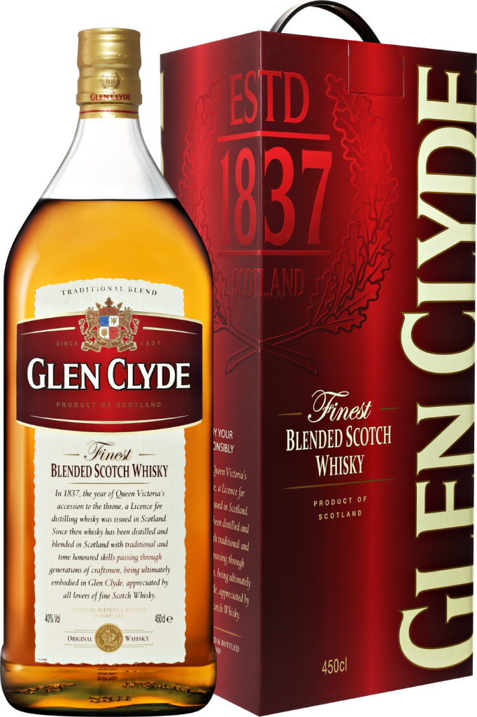 Шотландский виски - это напиток с богатой историей и традициями. В 1837 году был создан рецепт уникального виски, который получил лицензию и производился в Шотландии. В 90-х годах прошлого века этот рецепт был восстановлен мастерами винокурни Speyside Distillery и лёг в основу производства виски Glen Clyde. Своё название виски получил в честь долины реки Клайд, которая находится недалеко от Глазго. Это место славится родником с кристально чистой и мягкой водой. Glen Clyde 3 Years Old – молодой купажированный шотландский виски, который создан из тщательно отобранных солодовых и зерновых спиртов, выдерживается в дубовых бочках не менее трёх лет, благодаря чему приобретает прекрасный аромат и вкус, объединяя в себе лучшие достоинства шотландского скотча.