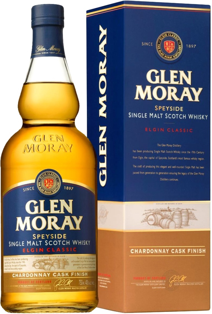 Glen Moray, Elgin Classic Chardonnay Cask Finish — односолодовый шотландский виски, созданный по классической технологии с выдержкой в бочках из-под бурбона, а затем — из-под вина Шардоне (в течение 8 месяцев). Виски рекомендуется употреблять в чистом виде, со льдом или сигарой.
