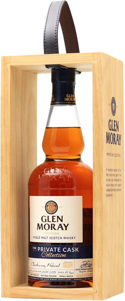Glen Moray, Private Cask, Chardonnay Matured - уникальное и ограниченное предложение линейки Прайвэт Каск, предназначенной для исследования мира виски. Отлично подходит для гурманов и ценителей этого напитка. Уникальный виски, проведший все 19 лет своей выдержки в единственной бочке из-под белого сухого вина из сорта шардоне. Разлит при натуральной крепости в количестве всего 66 бутылок.