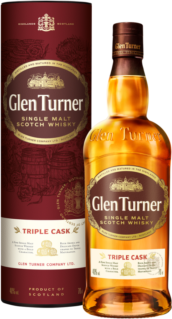 Glen Turner, Triple Cask Single Malt — односолодовый виски, созданный в Хайленде, в самом сердце Шотландии. Выдержка в трех типах бочек (из-под бурбона, портвейна и хереса) придает напитку насыщенный и глубокий вкус. Пятилетнее созревание в бочках обеспечивают виски гладкость и полноту, а классическая двойная перегонка сохраняет чистоту и выразительность напитка.
