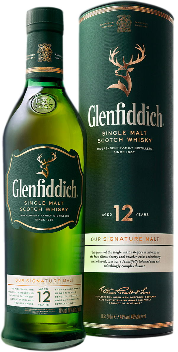 Самый известный в мире односолодовый виски Glenfiddich создается на винокуренном заводе Glenfiddich Distillery, принадлежащем независимой семейной компании William Grant & Sons. Компания была основана Вильямом Грантом в 1886 году и сегодня его традиции продолжает уже пятое поколение семьи. Продукты William Grant & Sons известны во всём мире, они продаются более чем в 180 странах. Glenfiddich производится в Хайленде, рецепт этого напитка не менялся с самого создания, для его изготовления используется кристально чистая вода из природных источников, выдержка производится в старинных дубовых бочках, где напиток приобретает свои неповторимые характеристики. Glenfiddich постоянно подтверждает репутацию лучшего односолодового виски в мире, получая большое количество престижных профессиональных наград.