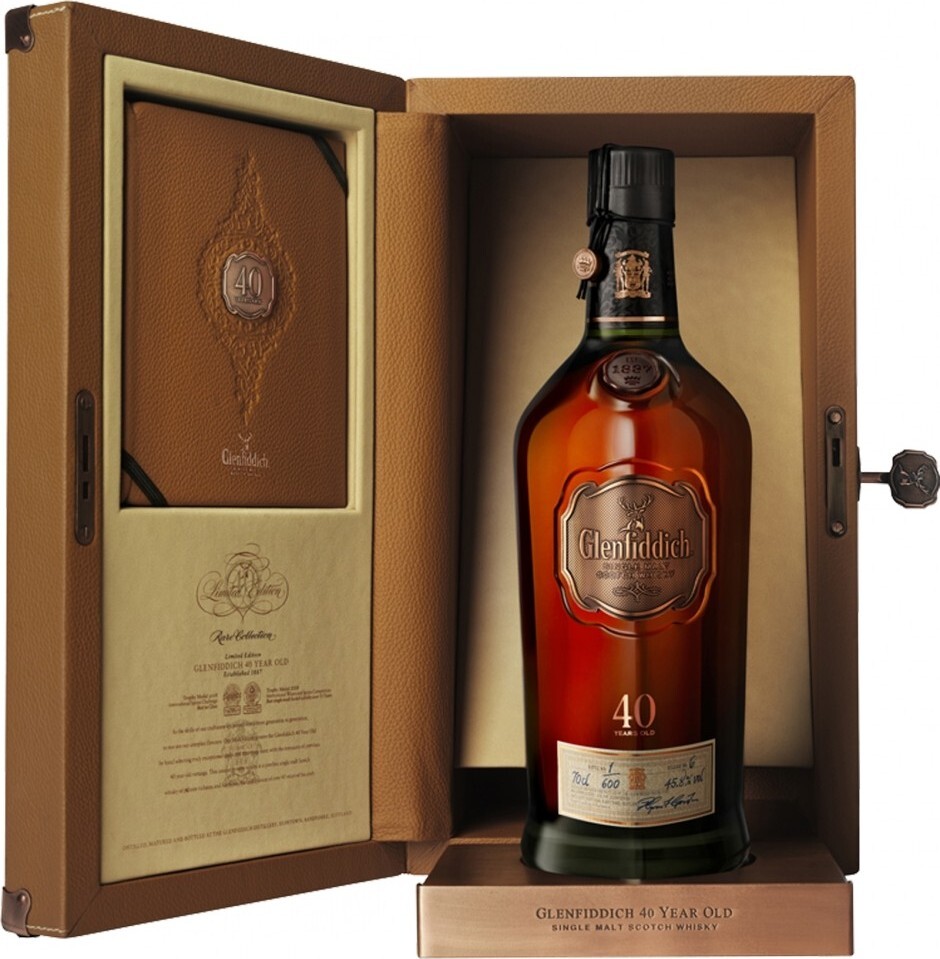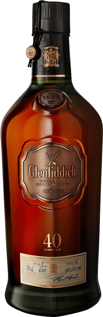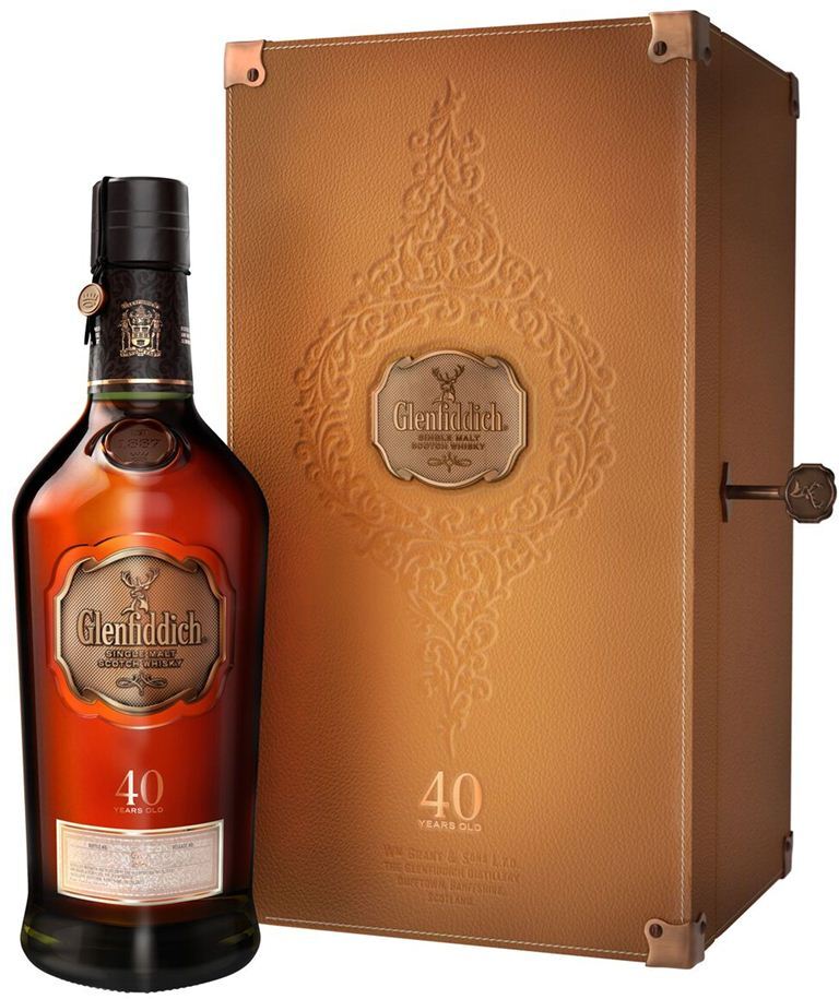 Glenfiddich, 40 Years Old — старейший виски регулярной серии винокурни — поставляется в деревянном коробе, обтянутом телячьей кожей с тиснением, который запирается на фигурный замок (ключ прилагается). В комплект также входит книга, рассказывающая об истории винокурни Гленфиддик, и сертификат подлинности. Виски был выпущен в количестве 600 экземпляров. Бутылки запечатаны восковым колпачком и имеют индивидуальный порядковый номер, нанесенный вручную. На этикете указан номер релиза, и каждая бутылка подписана владельцем винокурни собственноручно.