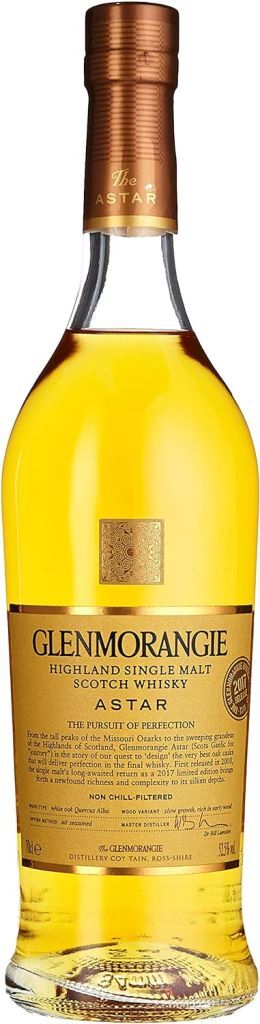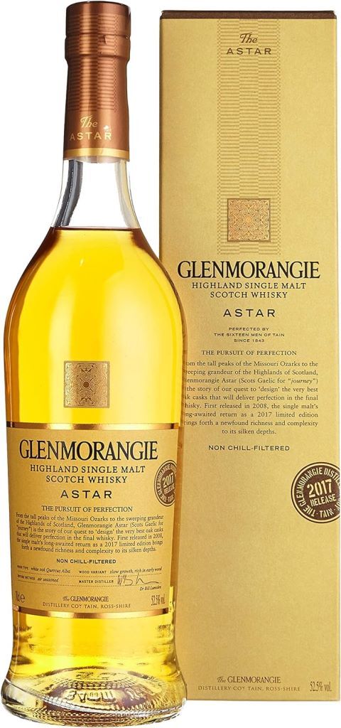 Односолодовый виски Glenmorangie, "Astar" из линейки "Limited Editions" был создан в 2008 году и получил название от гэльского слова "путешествие". Виски выдерживался в сделанных на заказ дубовых бочках, благодаря уникальным качествам которых в процессе выдержки достиг совершенства и шелковистой глубины вкуса. В 2017 году было принято решение возродить полюбившийся многим драм. Триумфальным возвращением этого виски производитель воздает должное поразительной силе и энергии дерева. Бочки для выдержки "Astar" релиза 2017 года были изготовлены из отобранной вручную древесины медленно растущего дуба с гор Озарк в американском штате Миссури. Бочки делаются с особой точностью, чтобы отдать деликатным спиртам максимум своих ароматов.