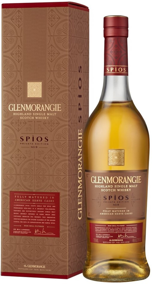 Односолодовый виски Glenmorangie, "Spios" стал девятым релизом в премиальной линейке "Private Edition". Выпущенный в начале 2018 года, "Spios" является первым виски компании, который полностью выдержан в бочках из-под американского ржаного виски. Пикантный вкус и инновационный характер напитка основан на приятных воспоминаниях ушедшей золотой эры американского ржаного виски, который в свое время считался напитком номер один в самых престижных салунах. В переводе с гэльского "Спиос" обозначает "специя". Виски "Spios" покоряет мягким вкусом, который раскрывается изумительными оттенками пряных специй, из которых наиболее ощутимы корица и гвоздика. Виски упакован в красивую подарочную коробку, поэтому станет желанным презентом для настоящих ценителей качественного крепкого алкоголя.
